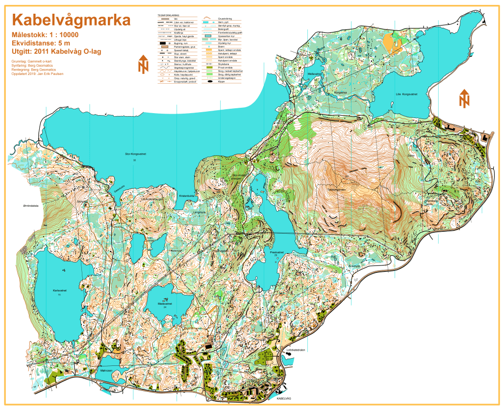 Målestokk 1:10000. Utsnitt som viser turorienteringen for 2019.