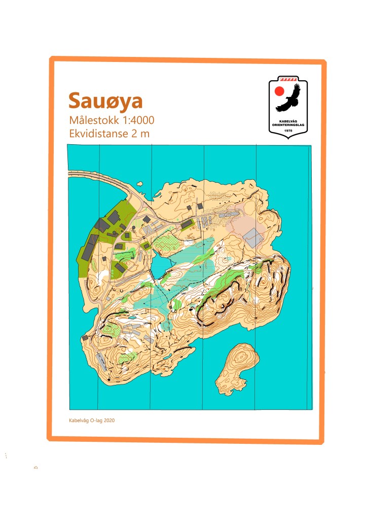 Målestokk 1:4000. Ekvidistanse 2 m. ISSPROM2019. Foreløpig utgave, ikke fullstendig synfart. Sprintkart for Sauøya ved Henningsvær.